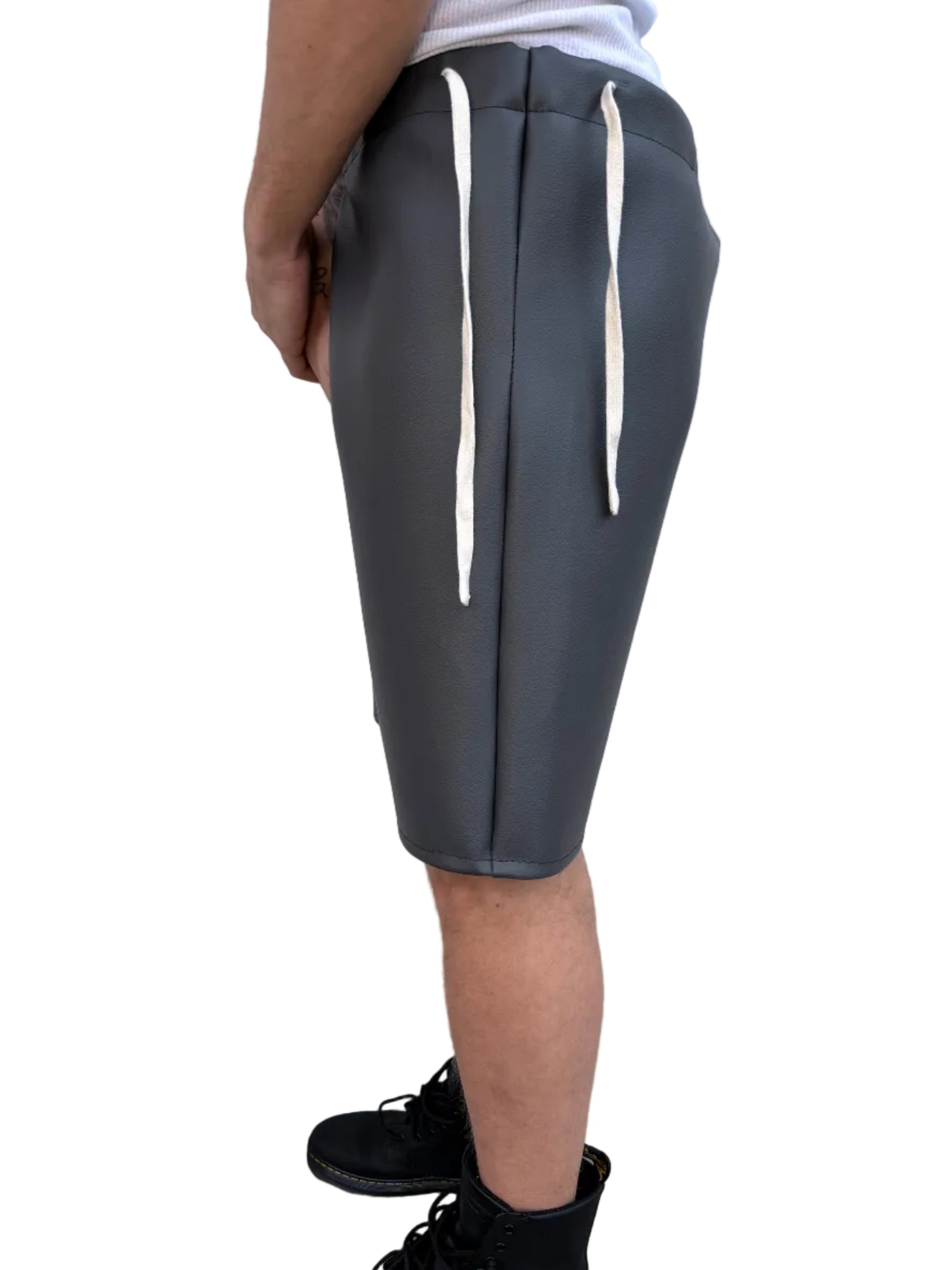 - Oversized Leather Shorts with Side Drawstring